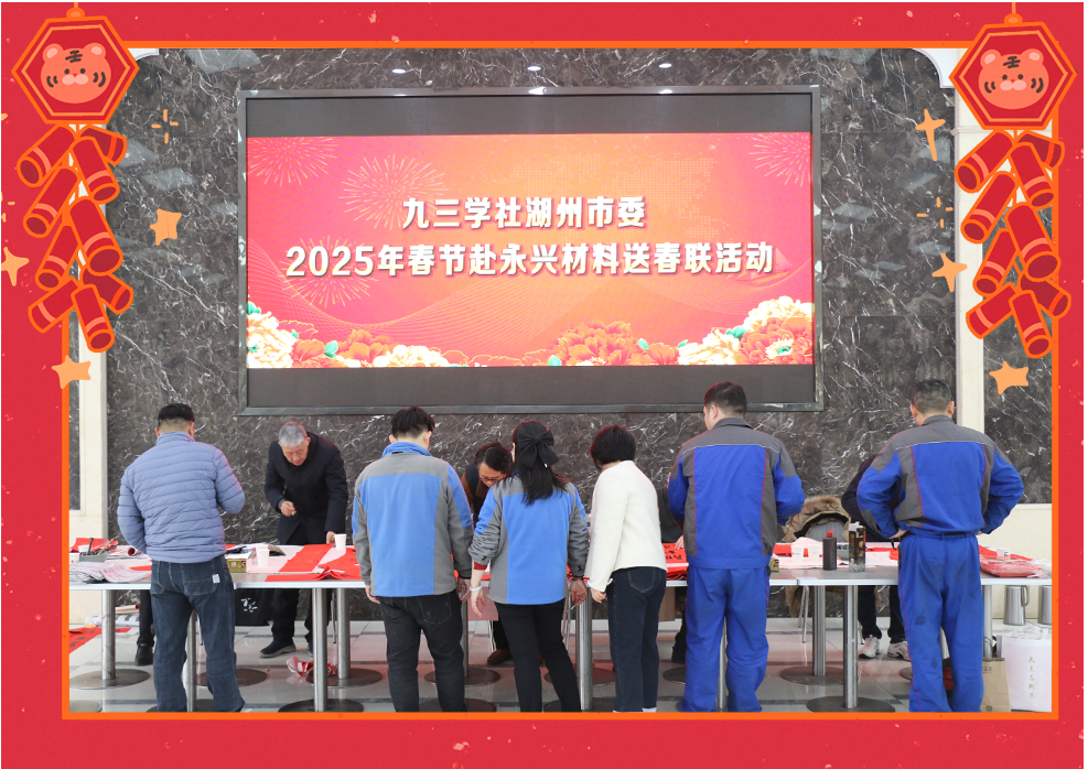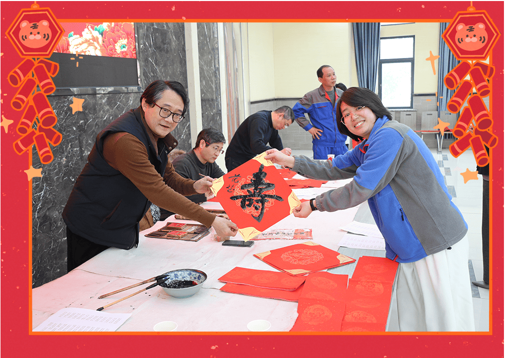靈蛇迎歲,新元肇始。1月23日上午,九三學(xué)社湖州市委的書(shū)法家們來(lái)到永興,為公司員工送上新春的祝福。他們筆力遒勁,揮毫潑墨,筆觸間蘊(yùn)含著深厚的文化底蘊(yùn)與新春的吉祥氣息。現(xiàn)場(chǎng)氣氛活躍,書(shū)法家們根據(jù)員工的個(gè)性需求精心創(chuàng)作,員工們紛紛排隊(duì)領(lǐng)取,一幅幅獨(dú)具匠心的春聯(lián)帶著濃濃的溫情和祝福。隨著書(shū)法作品一一完成,墨香撲鼻,員工們感受到新春的喜悅和九三學(xué)社的深情厚意。這一場(chǎng)書(shū)法贈(zèng)春的活動(dòng),不僅讓大家感受到傳統(tǒng)文化的魅力,也增添了新春佳節(jié)的喜慶氛圍。